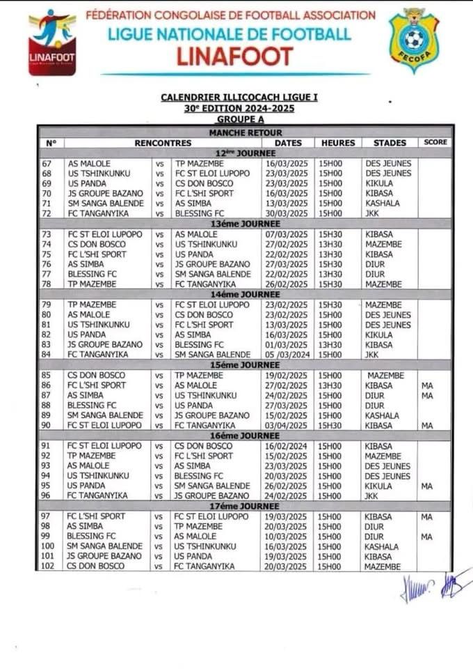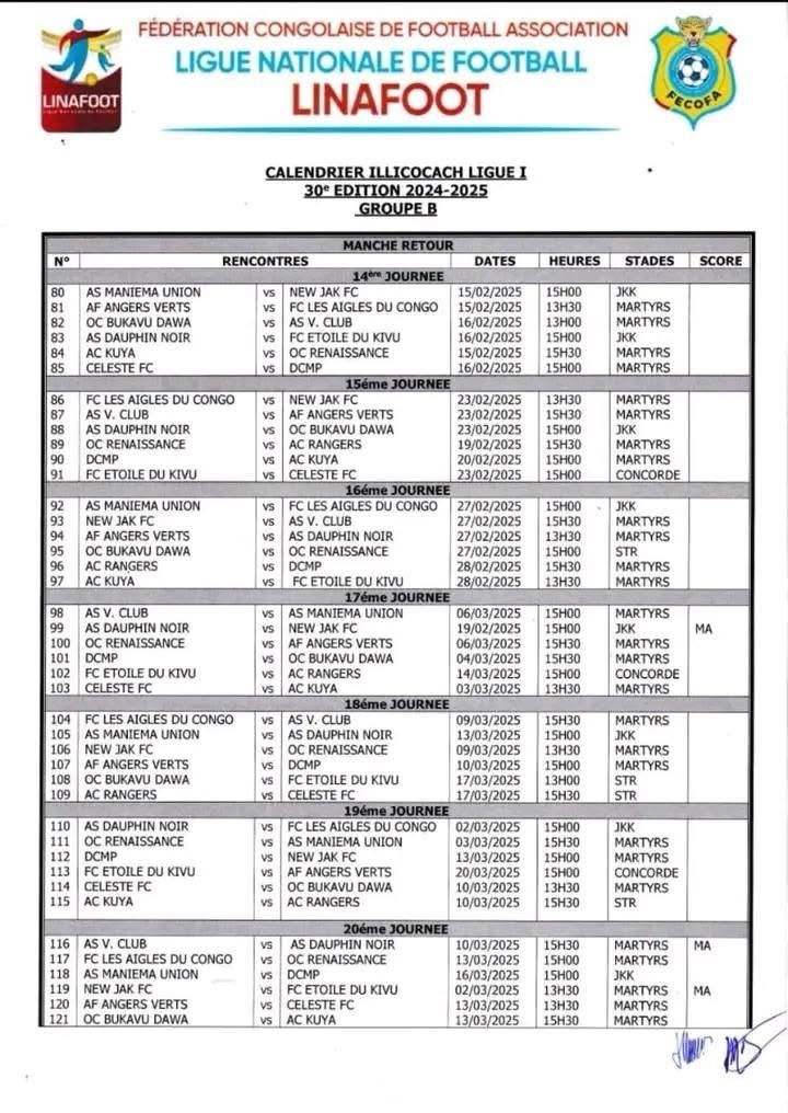 Le calendrier des matchs pour la manche retour du championnat de la Ligue 1, pour le compte de la saison 2024-2025 a été rendu publique.