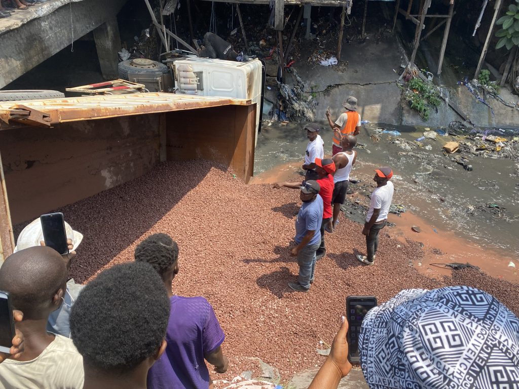 c’est le bilan d’un drame survenu ce mercredi 02 Avril 2024 où un camnion à benne basculante transportant des caillasses a echoué dans le canal Bisthaku- shaku du quartier qui porte le même nom sur le croisement des avenues Kasai et Mbomu dans la commune de Barumbu au nord de la ville de Kinshasa.
